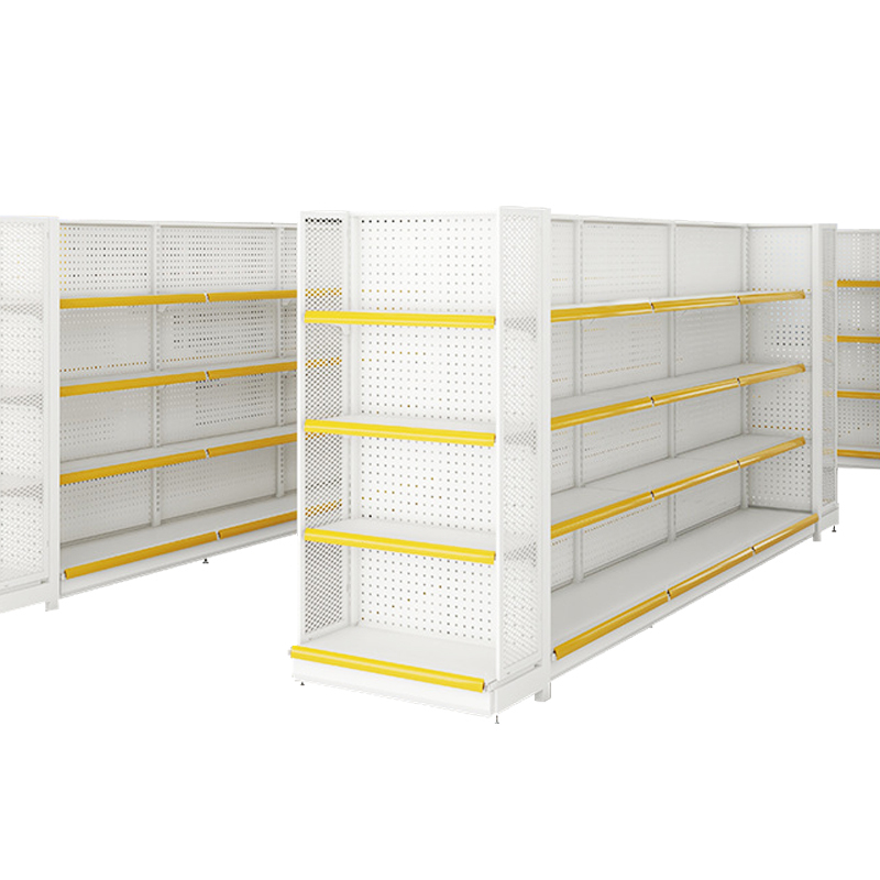 Perakende mağazaları ve süpermarketler için özelleştirilebilir renkler ve boyutlarla modern metal ekran rafı.